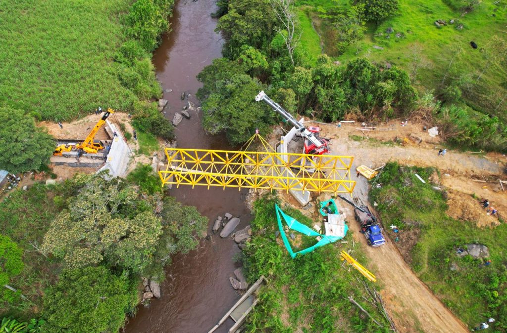 El funcionario explicó que el puente cuenta con una longitud aproximada de 34 metros y una capacidad de carga de 35 toneladas. La estructura metálica, con un peso cercano a las 29 toneladas, está siendo posicionada sobre estribos cimentados con caissons de siete metros de longitud y 1,20 metros de diámetro, lo que garantiza la estabilidad y seguridad de la obra. Estas condiciones técnicas permitirán ofrecer una infraestructura confiable para el tránsito vehicular y el transporte de carga en la región.